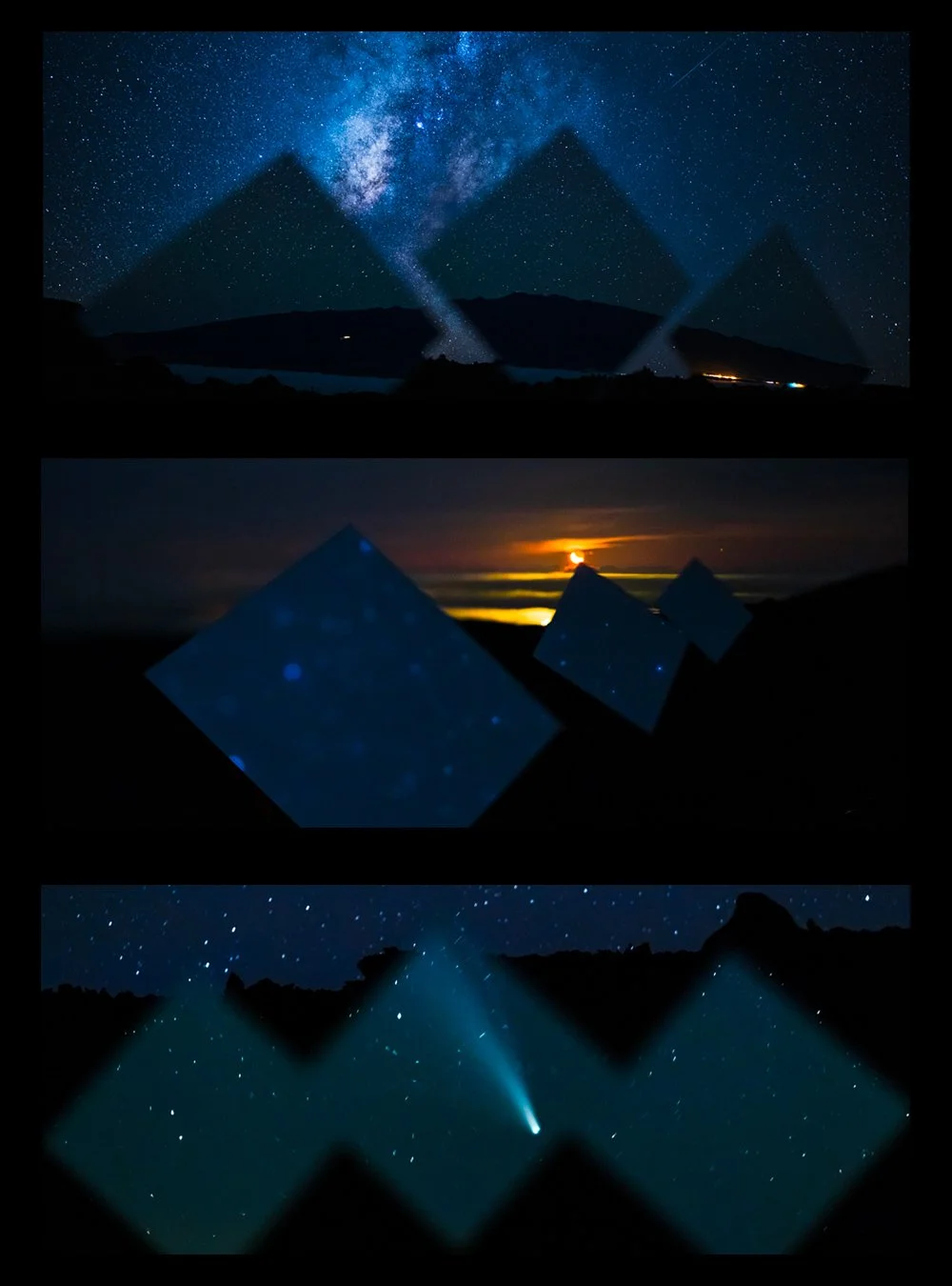 ReflectionVOID1.5 was a solo production by Lance Page, shot in 12 nights over 3 new moon phases above 9000’ on Mauna Loa during the summer months of 2020. Featuring Comet NEOWISE (C/2020 F3). All reflection and focus effects captured entirely in-camera using motion control equipment, tilt shift/fast lenses and a bunch of 1’x1’ mirrors.